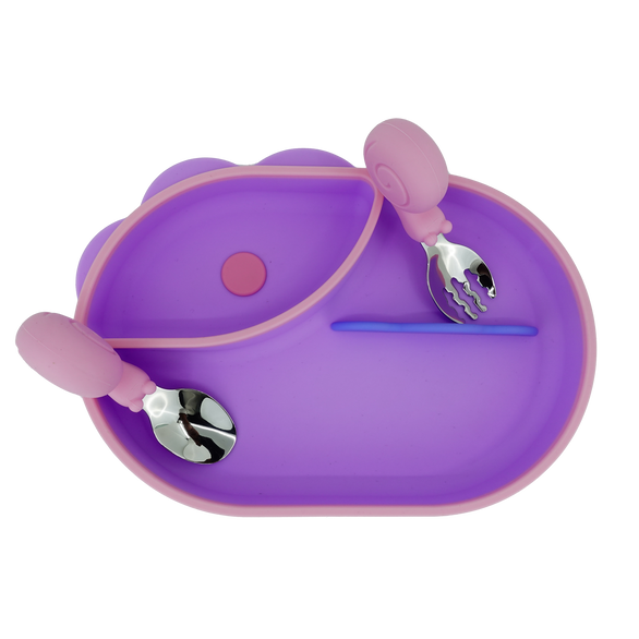 Elevate mealtime with our 100% food-grade silicone snail plate set, featuring safety and convenience. It includes plate,Trainer spoon & fork all BPA-free and reusable. With balanced meal sections and superior suction, it's stress-free for parents and picky eaters alike. Plus, it's easy to clean and makes a precious gift for growing families. 🐌🍽️